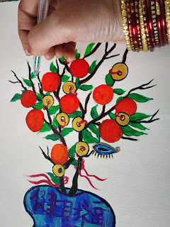 | Feng shuii Gold coins Mandarin Orange tree painting for sale |